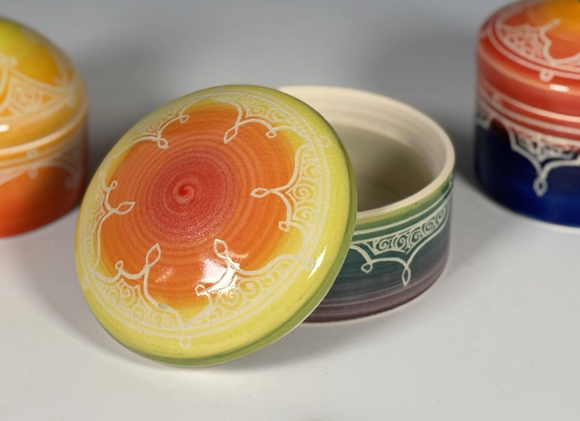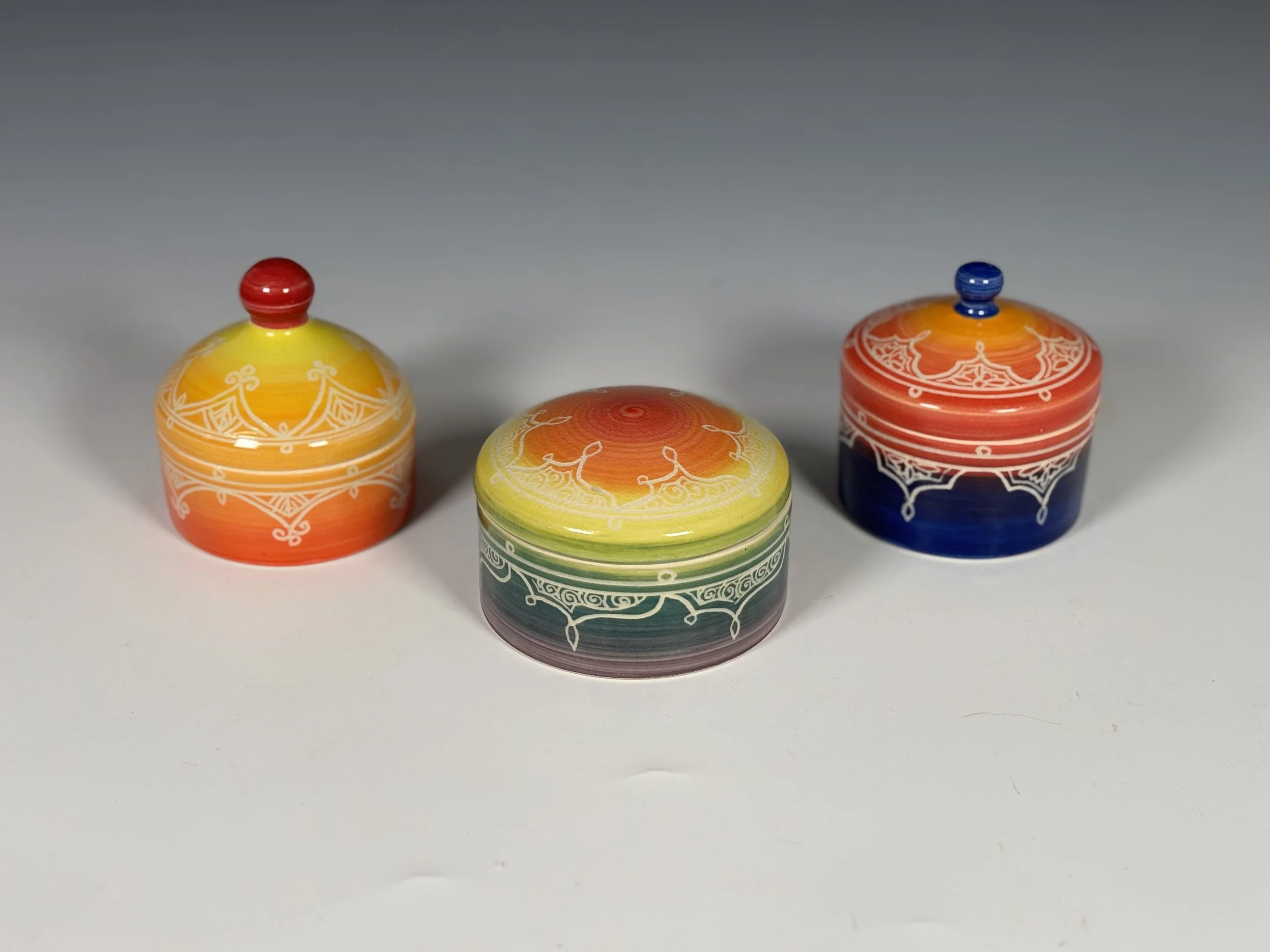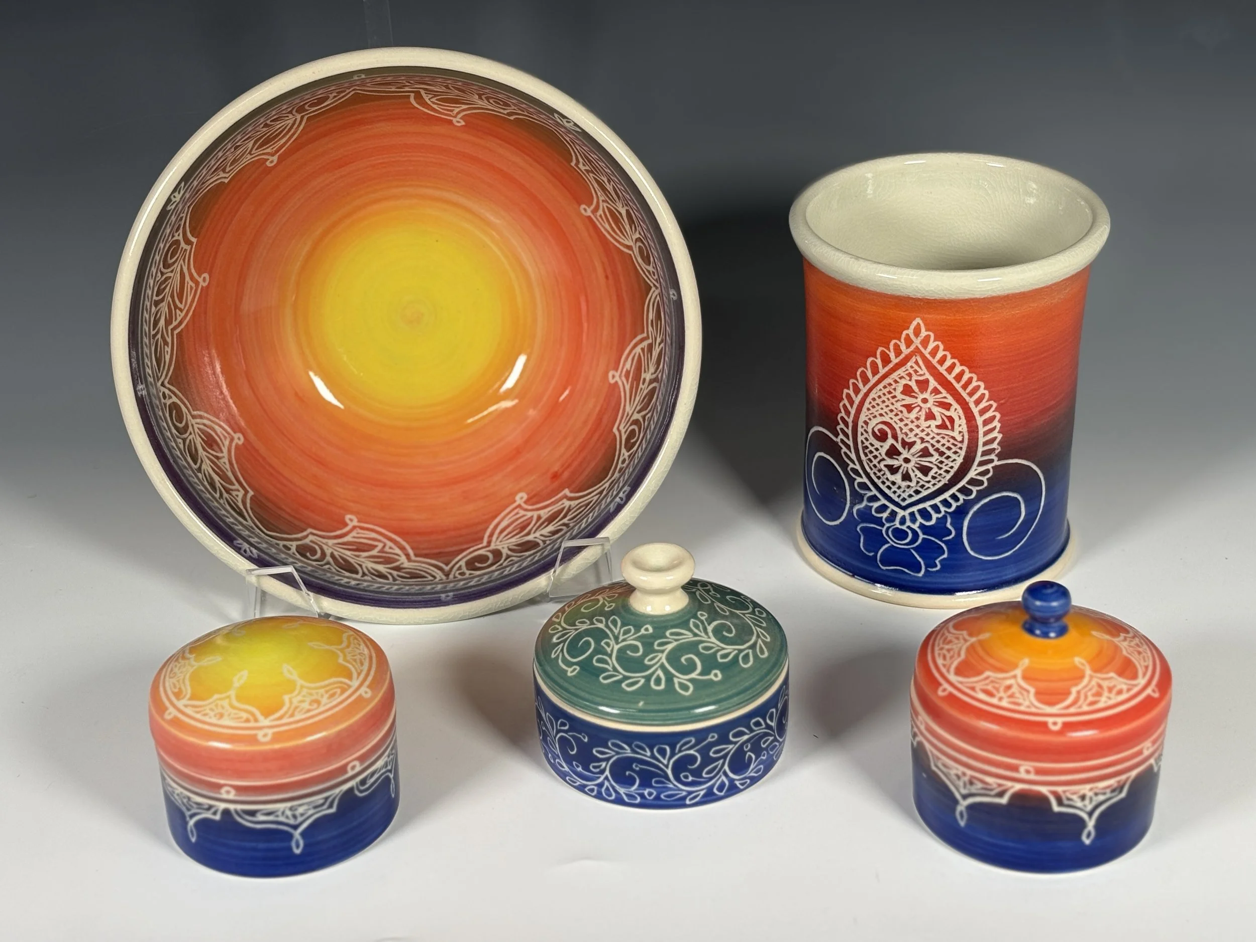 HennaPottery Shop Categories: Select a Category Cups & Mugs Vases & Jars Misc HennaPottery Shop Cups & Mugs | Vases & Jars | Misc | Available at Exhibit B Gallery (not sold out) from $70.00 Sold out Golden Rabbit Utensil Crock $85.00 One of a Kind! Purple Green Hamsa Mug $60.00 One of a Kind! Treasure Box Lidded jar from $65.00 Purple/Green Paisley Utensil Crock $85.00 One of a Kind! Blue Rabbit Mug $60.00 One of a Kind! Rainbow Treasure Box Lidded Jar $75.00 Green/Yellow Paisley Utensil Crock $85.00 One of a Kind! Purple Henna Peacock Mug $60.00 One of a Kind! Flared Cup Sale Price: $25.00 Original Price: $30.00 Sale Teal/Indigo Heart Utensil Crock $85.00 One of a Kind! Indigo Tree of Life Mug $60.00 One of a Kind! Henna Floret Mug $60.00 One of a Kind! Sunflower Mug, multiple colors available from $40.00 Sale