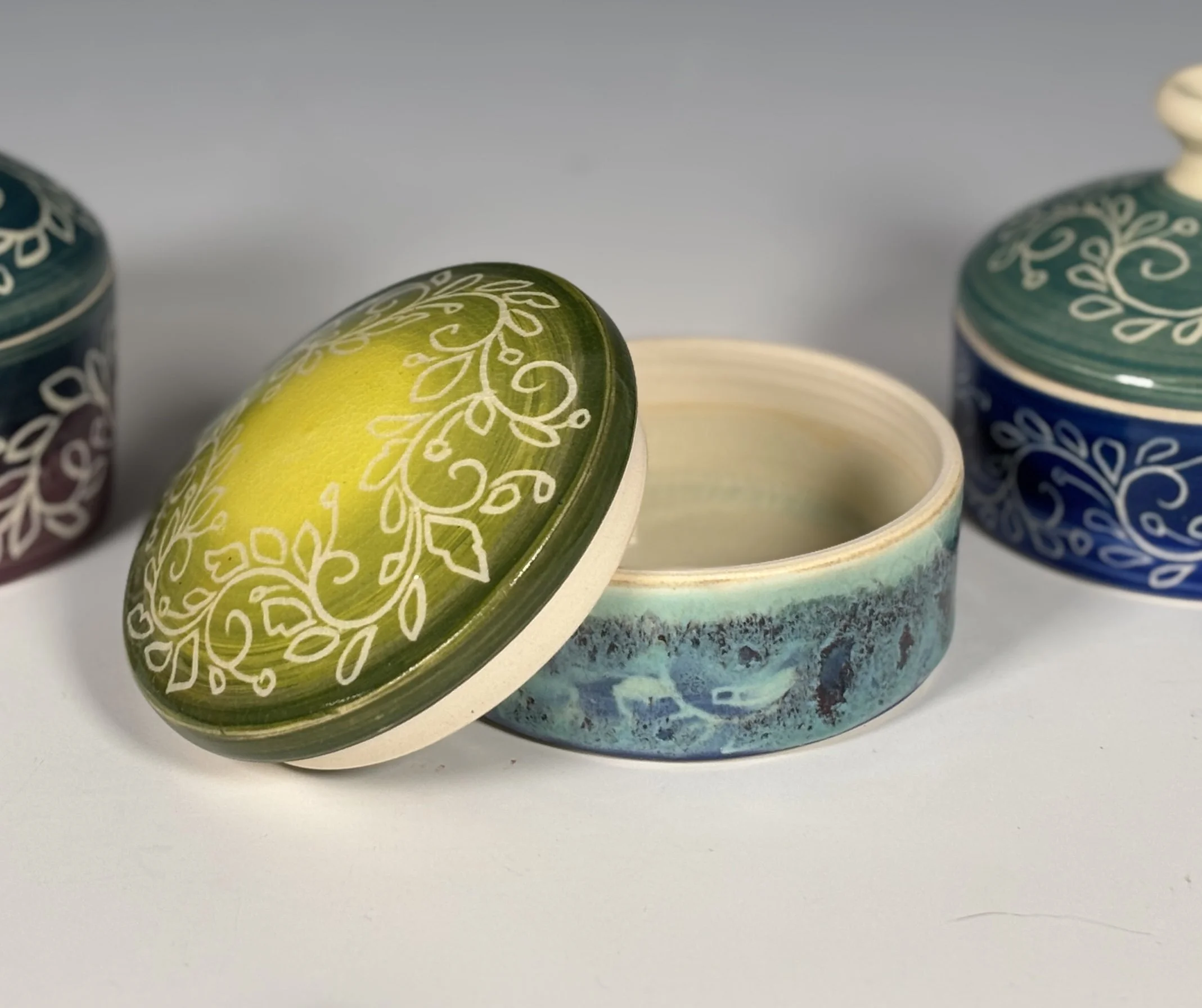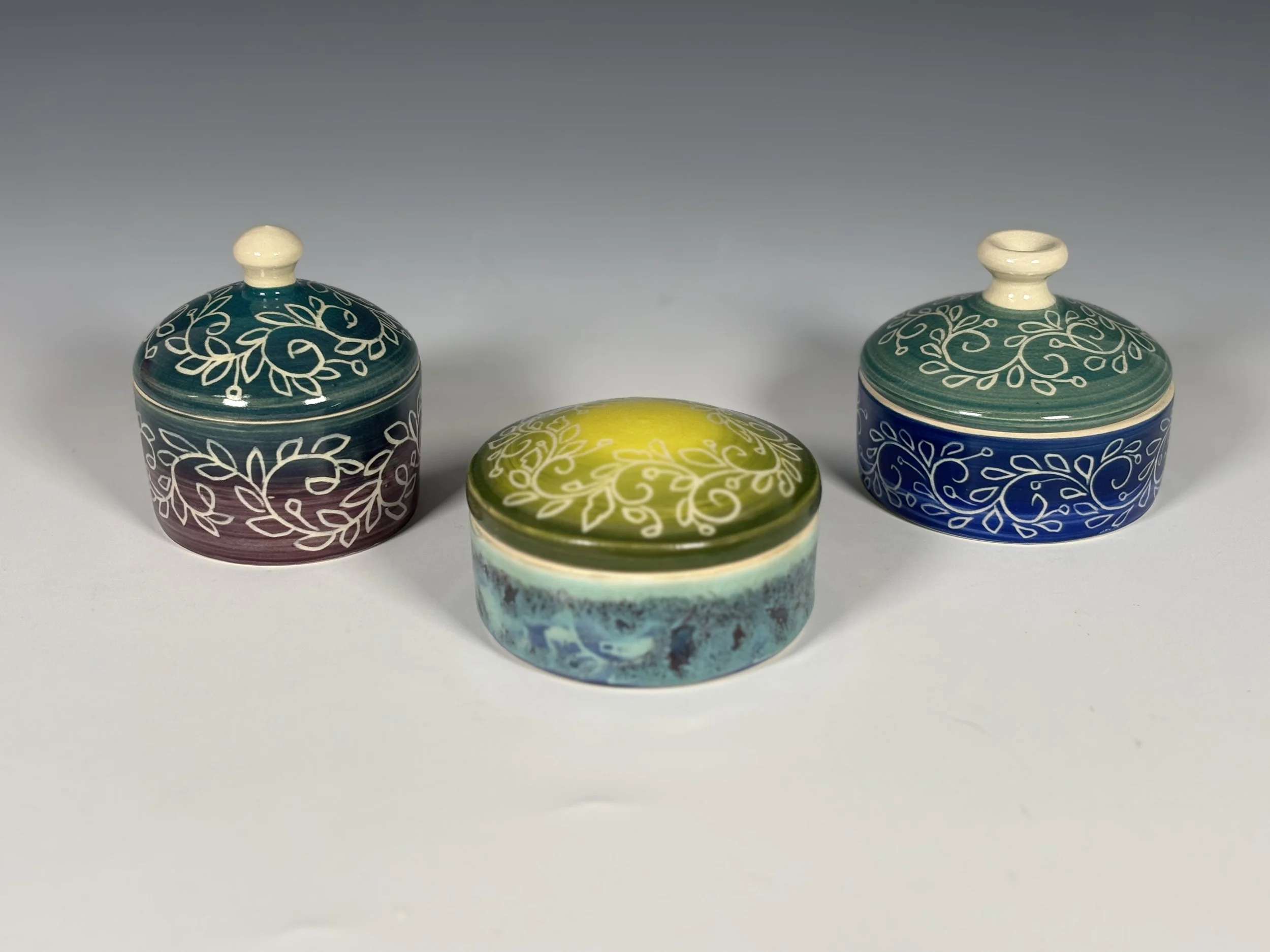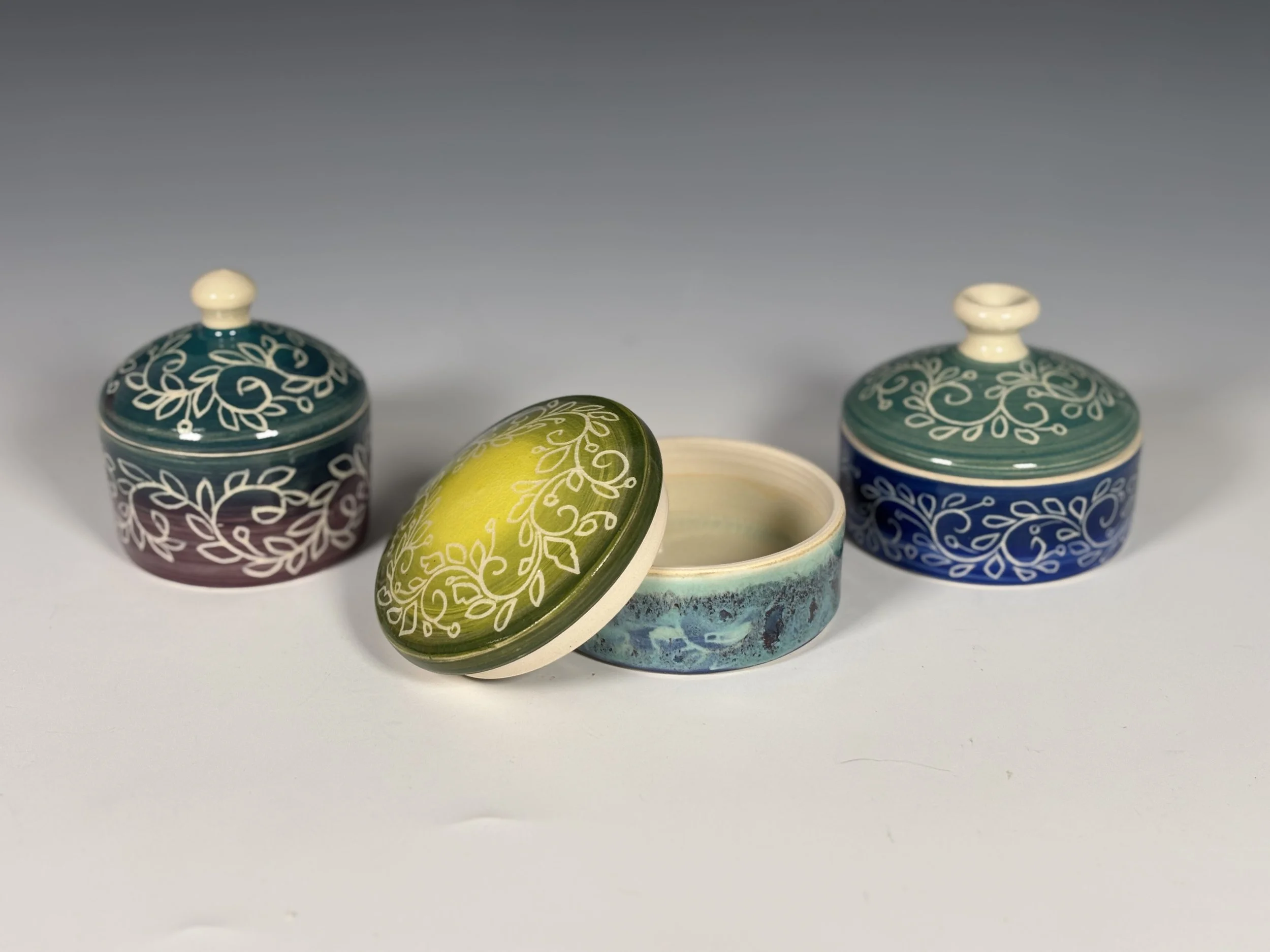 HennaPottery Shop Categories: Select a Category Cups & Mugs Vases & Jars Misc HennaPottery Shop Cups & Mugs | Vases & Jars | Misc | Available at Exhibit B Gallery (not sold out) from $70.00 Sold out Golden Rabbit Utensil Crock $85.00 One of a Kind! Purple Green Hamsa Mug $60.00 One of a Kind! Treasure Box Lidded jar from $65.00 Purple/Green Paisley Utensil Crock $85.00 One of a Kind! Blue Rabbit Mug $60.00 One of a Kind! Rainbow Treasure Box Lidded Jar $75.00 Green/Yellow Paisley Utensil Crock $85.00 One of a Kind! Purple Henna Peacock Mug $60.00 One of a Kind! Flared Cup Sale Price: $25.00 Original Price: $30.00 Sale Teal/Indigo Heart Utensil Crock $85.00 One of a Kind! Indigo Tree of Life Mug $60.00 One of a Kind! Henna Floret Mug $60.00 One of a Kind! Sunflower Mug, multiple colors available from $40.00 Sale